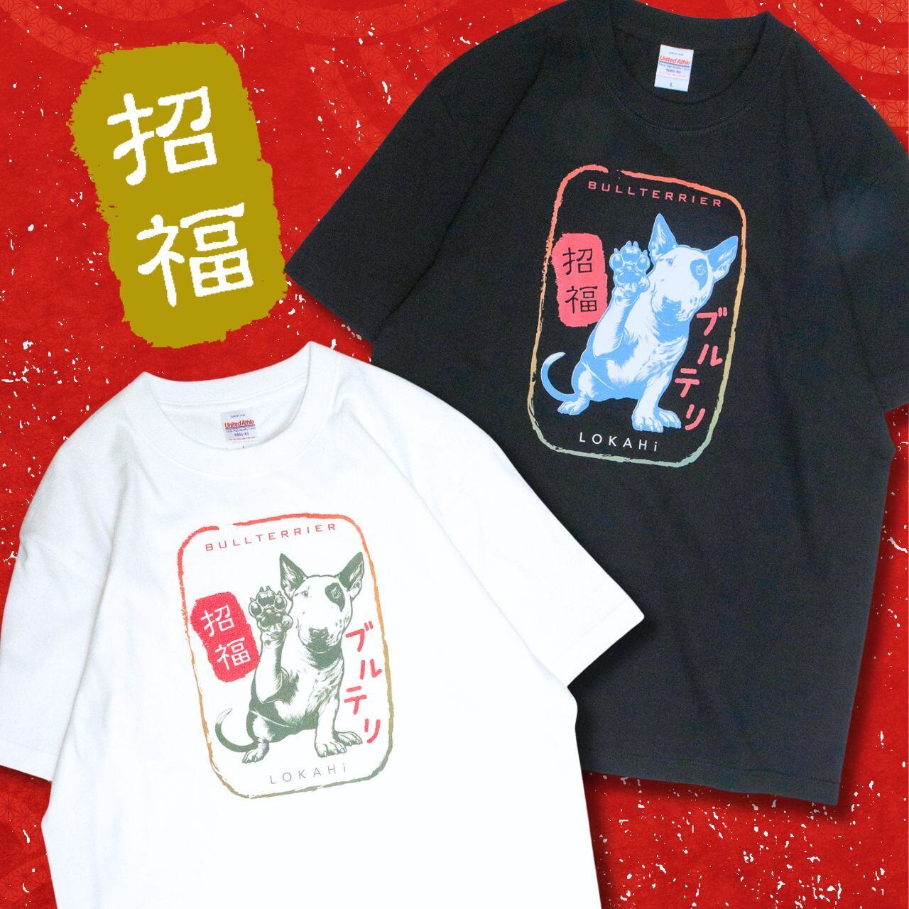 和の“招福”とブルテリアの可愛さが絶妙にマッチした縁起の良い1枚です。