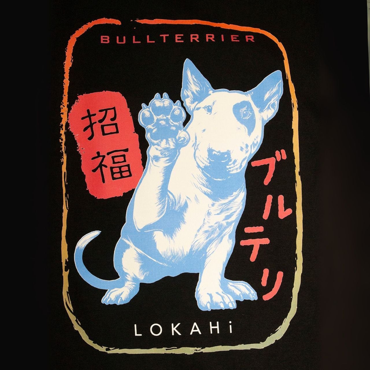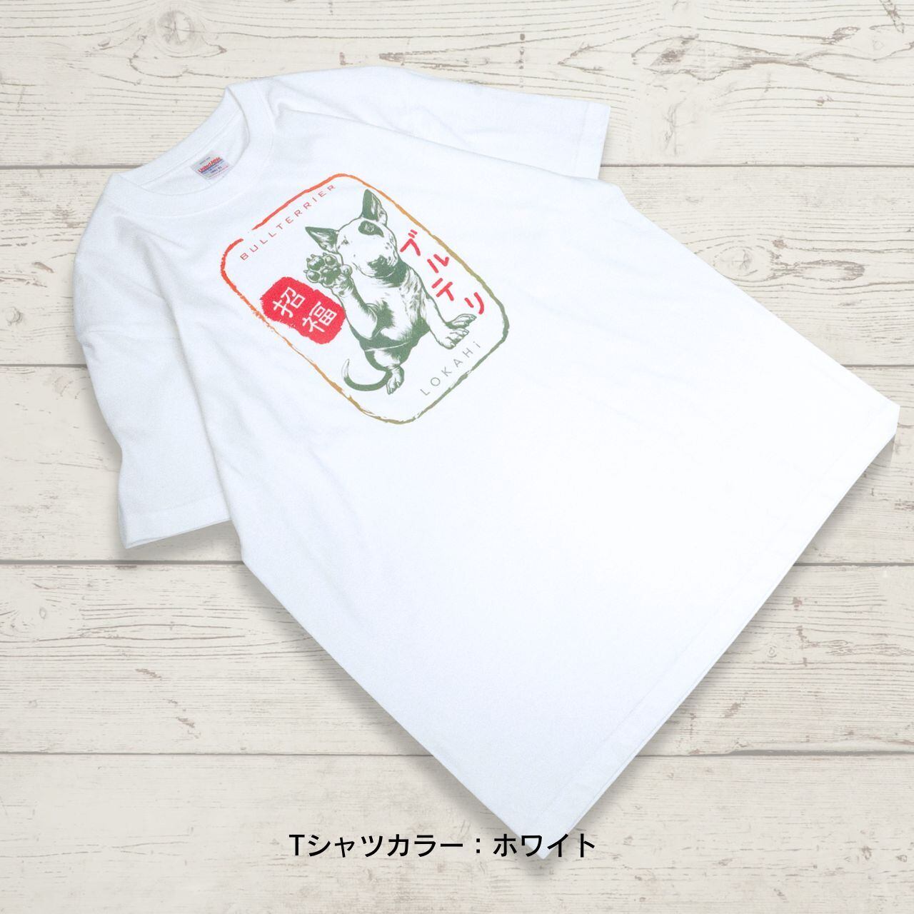 愛嬌たっぷりのブルテリアが、おしゃれなお守りTシャツになりました。