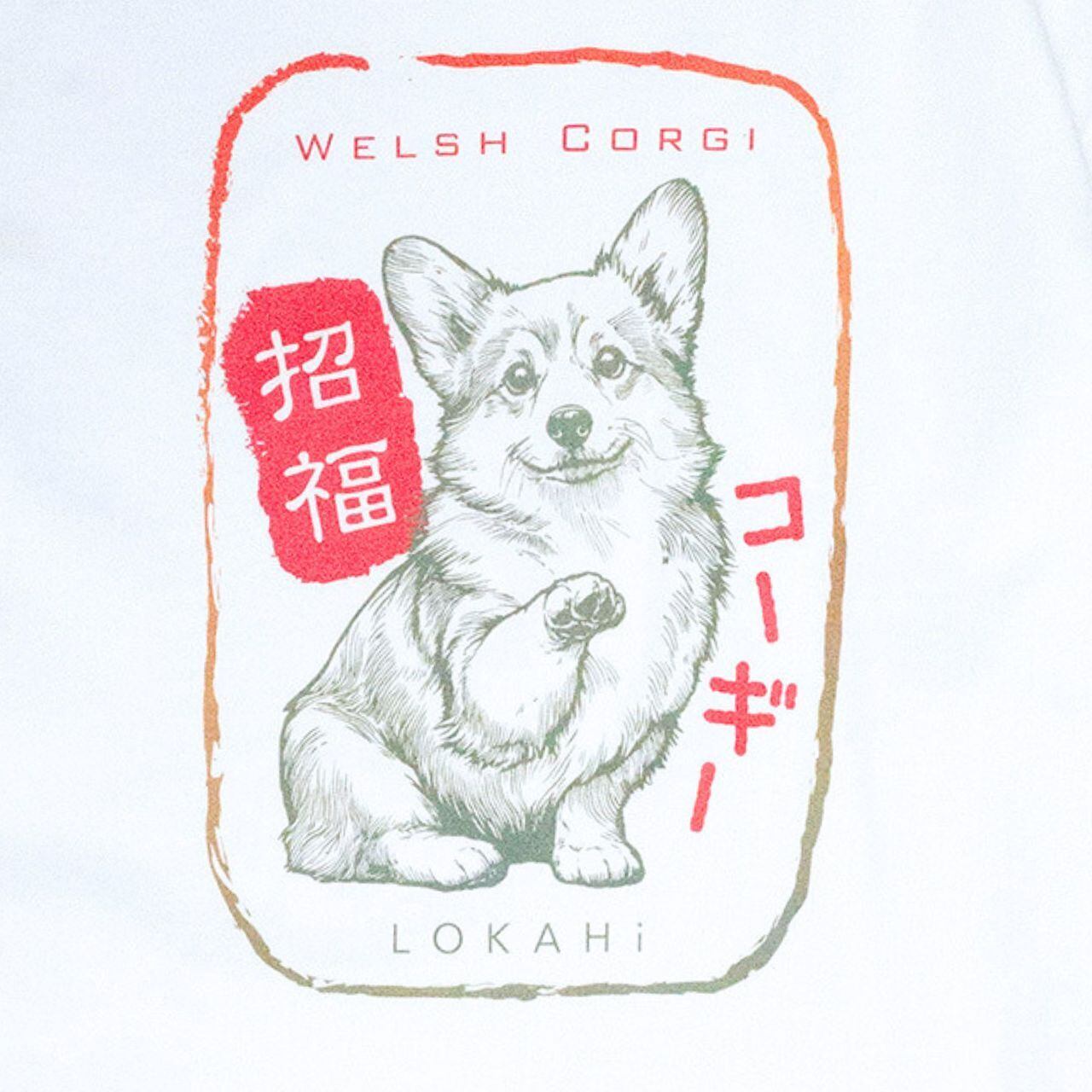 愛嬌たっぷりのコーギーが、おしゃれなお守りTシャツになりました。