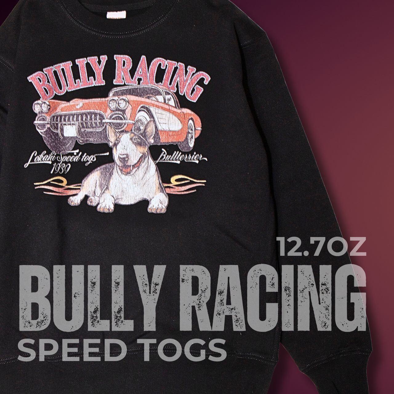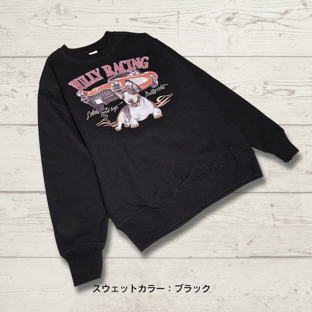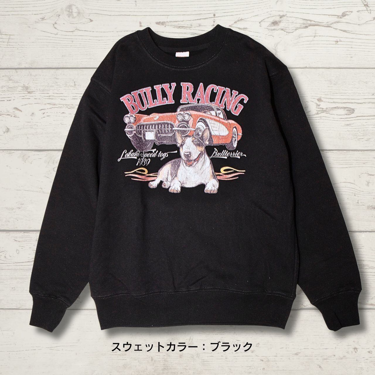 【クラック加工】ブルテリア レーシング クルーネックスウェット<Vintage car>