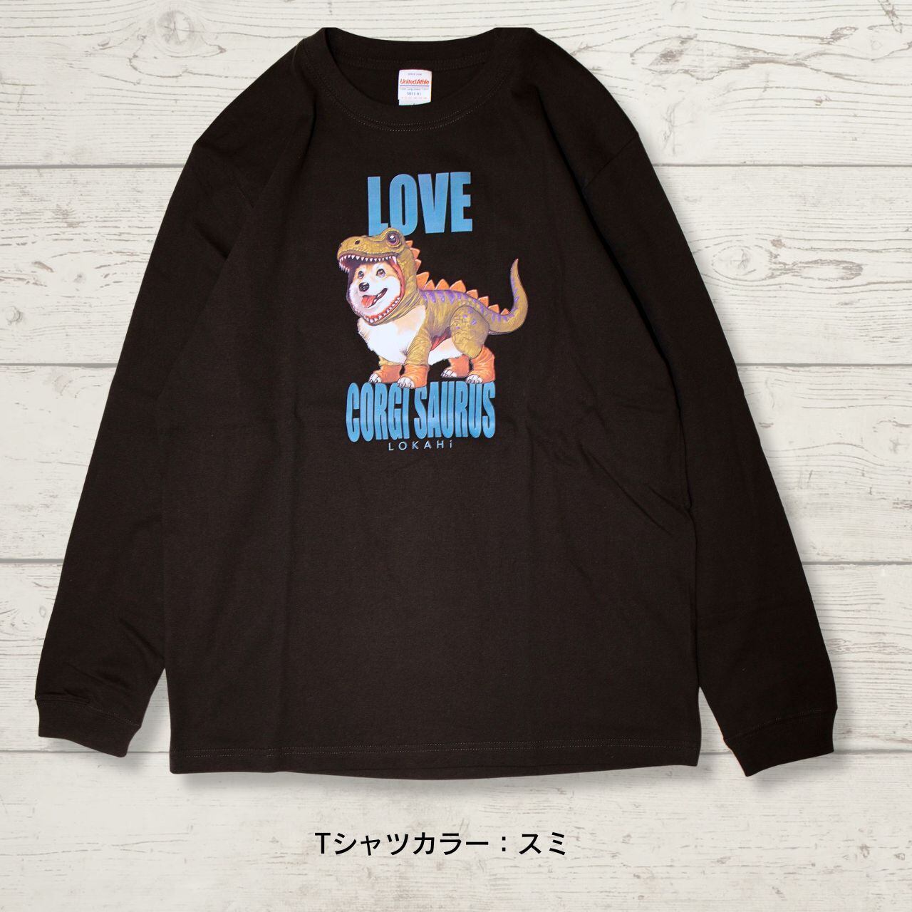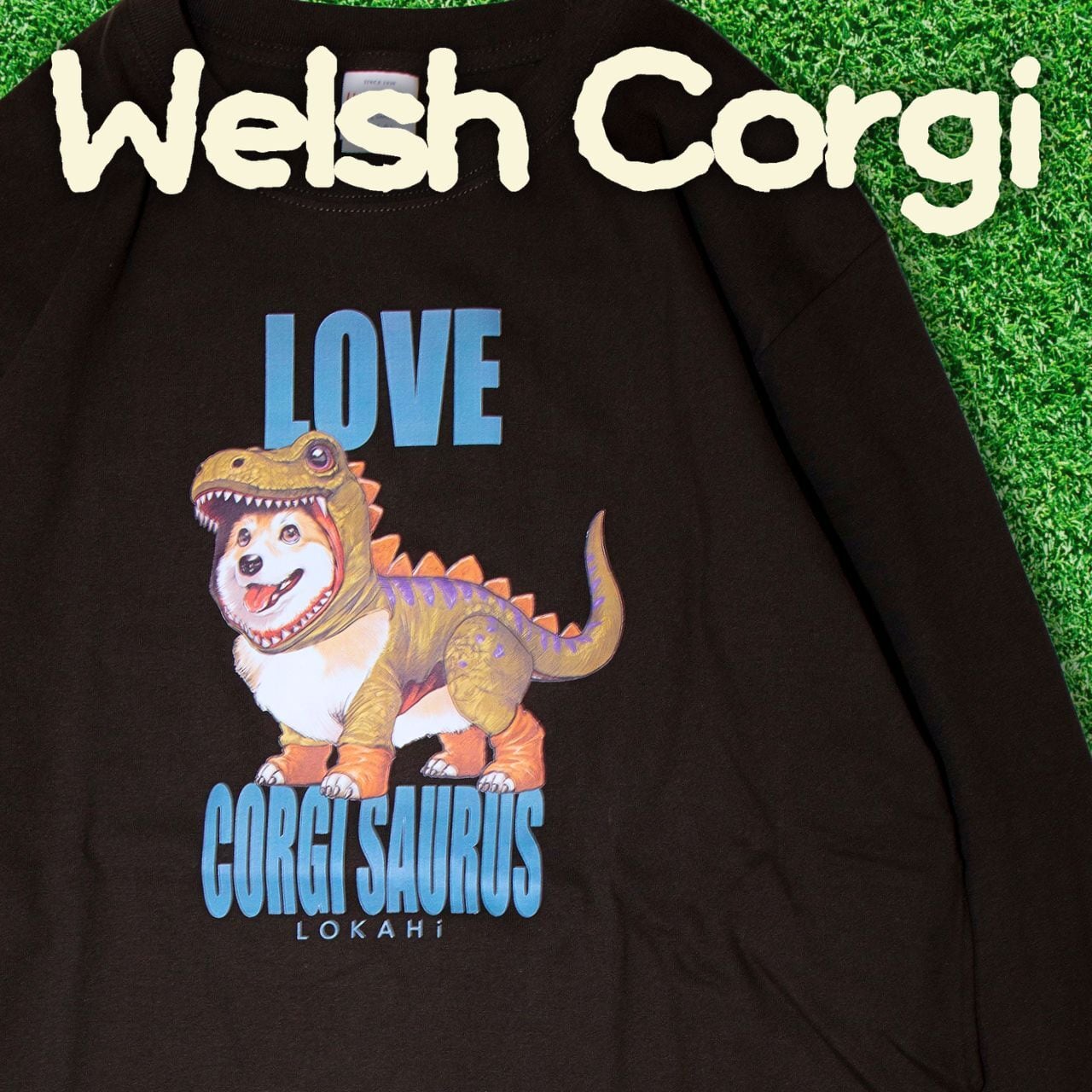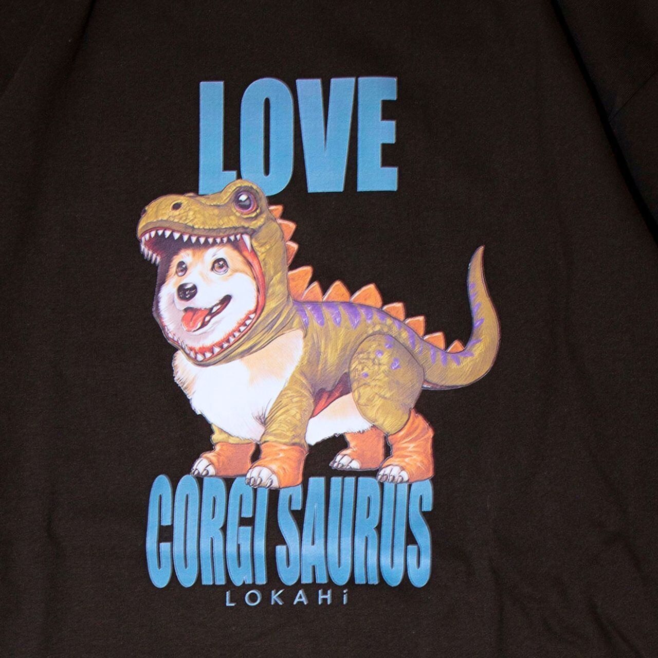 「LOVE CORGI SAURUS」のロゴがアクセント。