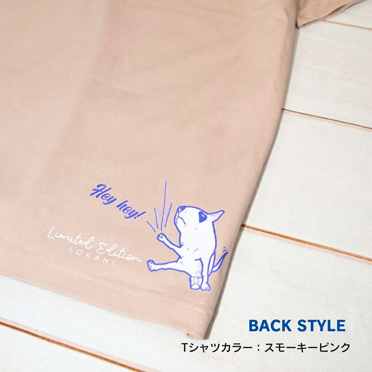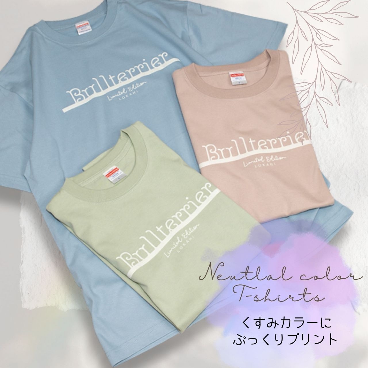 自然体でおしゃれな印象のくすみカラーに、シンプルでかわいらしいブルテリアロゴが胸に入ったデザインです。